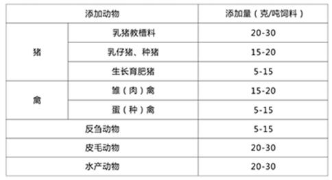 我公司丁酸梭菌規(guī)格為25公斤/袋;特別適用對象:畜禽、皮毛動物和水產(chǎn)動物。丁酸梭菌使用添加量:以50億CFU/g丁酸梭菌為例:配合全價飼料推薦用量如下表,復合預混料和濃縮料按比例折算后添加。